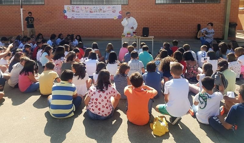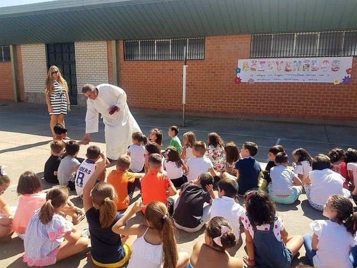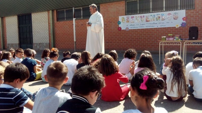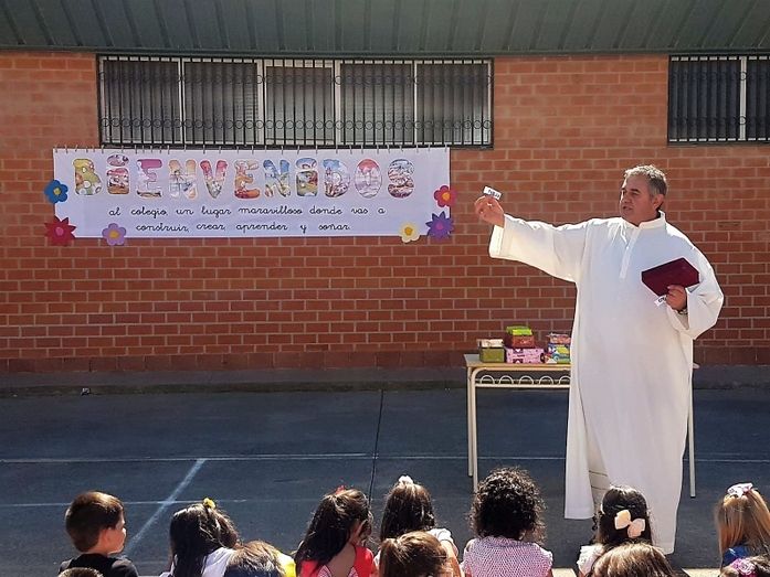 Tal y como explican desde el centro fueron dos actos que contaron con la colaboración del párroco de San Juan del Mercado y Santa María de Azoague, que se mostró muy afable y cercano con los alumnos que se congregaron en el patio del centro educativo.