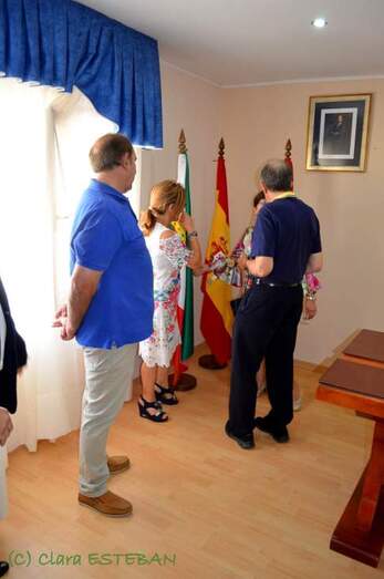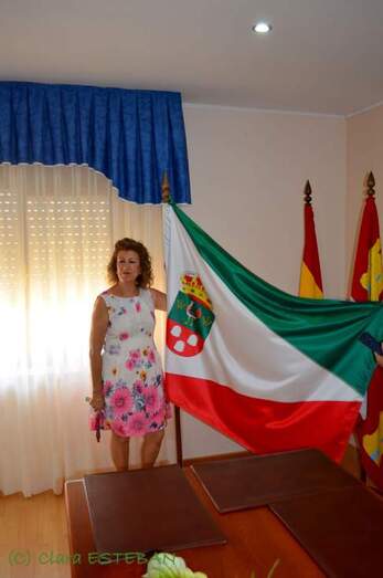 El escudo que se presentó está bordado y donado por la propia alcaldesa. La bandera recuerda alguna de las señas de identidad del municipio como son las Lagunas y San Marcos, el patrón del pueblo, queriendo recordar a todos los vecinos que habitan en el pueblo o que se sienten parte de él.