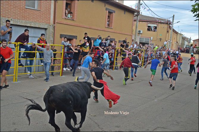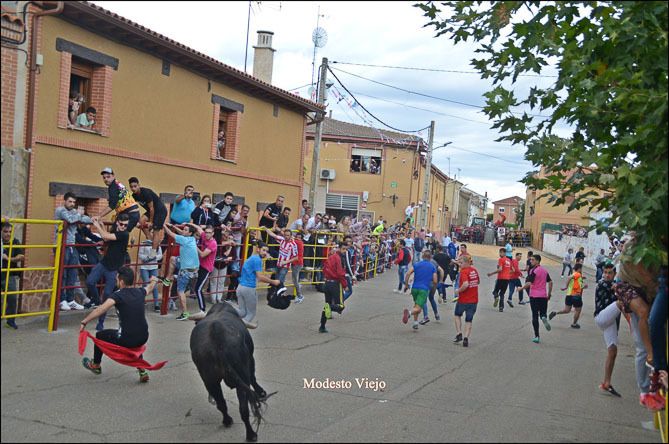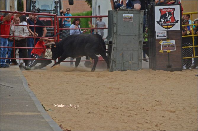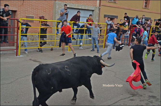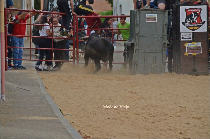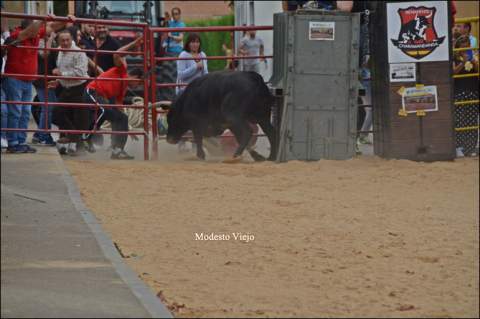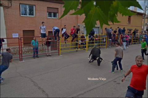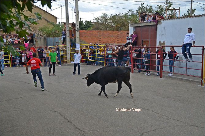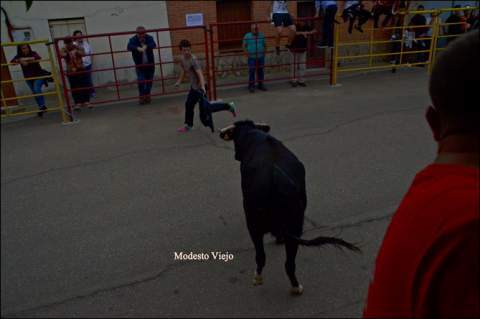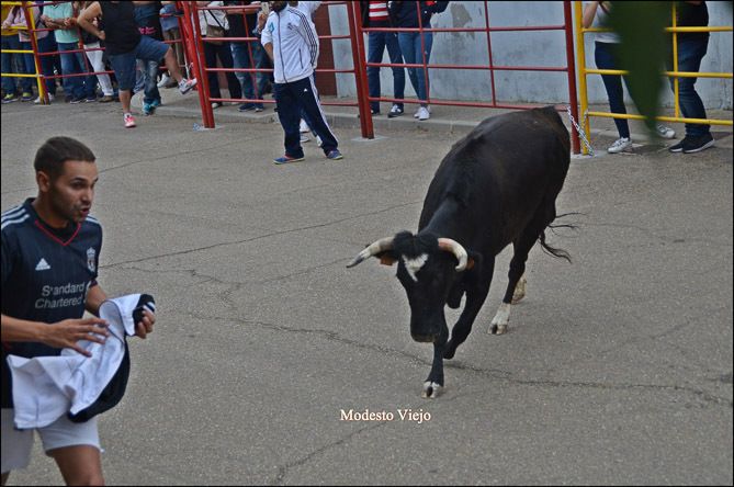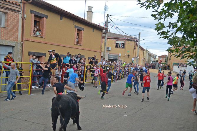 El Toro de la Asunción y la Vaca de la Comisión hicieron esta tarde las delicias de los taurinos de la Comarca, que han disfrutado con el buen juego de estas reses en un circuito vallado en el centro del pueblo.