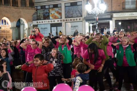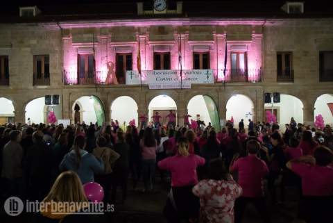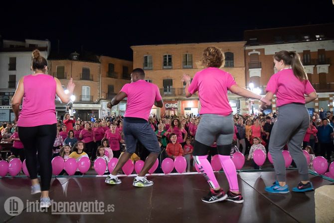 En el Día del Cáncer de Mama la AECC de Benavente quiso organizar la actividad Zumba Solidario en la Plaza Mayor para recaudar fondos en la lucha contra el Cáncer de Mama. Las primeras 250 inscritas recibían una camiseta rosa con la que ayer por la tarde tiñeron la plaza mayor por una buena causa.
