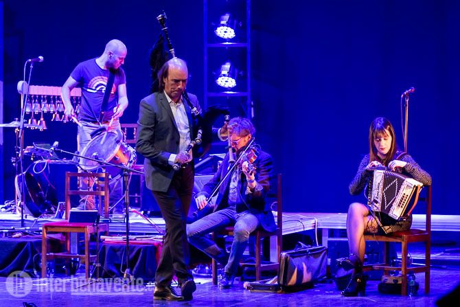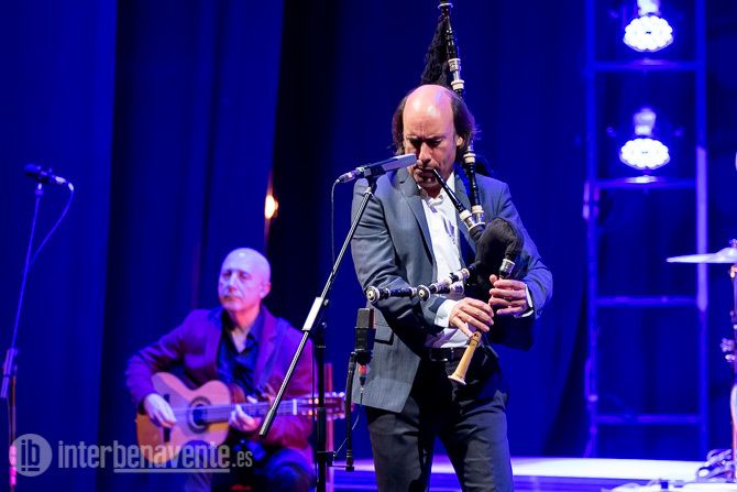 Carlos Núñez volvió a Benavente rodeado de grandes músicos como el violinista Jon Pilatztke, todo un espectáculo por si mismo, Itsaso Elizagoien, acordeonista navarra, el guitarrista Pancho Alvarez y su hermano el percusionista Xurxo Nuñez.