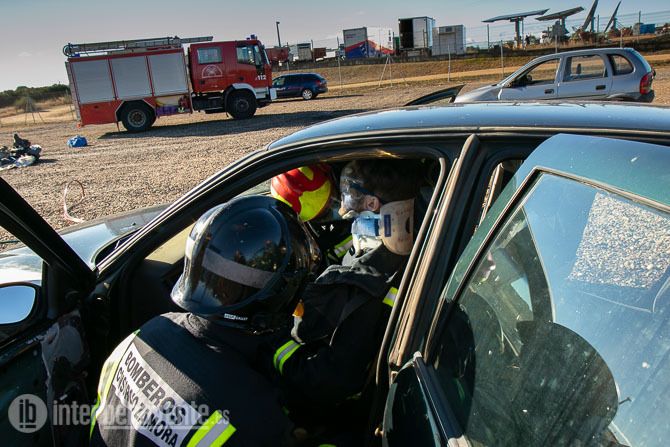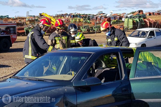El Jefe de Coordinación del Servicio del Parque de Bomberos de Benavente, Julio Gutiérrez explicaba que se tratan de unas prácticas de excarcelación, generar espacios, evacuar a las víctimas y actuación psicológica, en la que participan los 12 bomberos del Parque de Benavente.