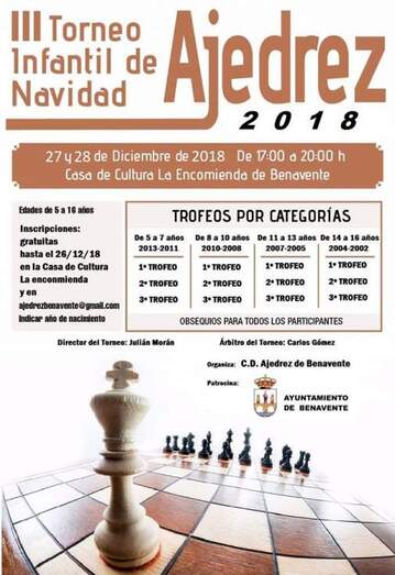 Los días 27 y 28 de diciembre de 17:00 a 20:00h en la Casa de Cultura La Encomienda de Benavente.