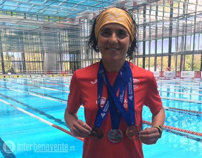La deportista benaventana, María José García, participó este fin de semana en Vitoria en el Campeonato de España de Fondo Master, junto a 332 nadadores y consiguiendo una plata y dos bronces en las tres pruebas en las que se presentaba