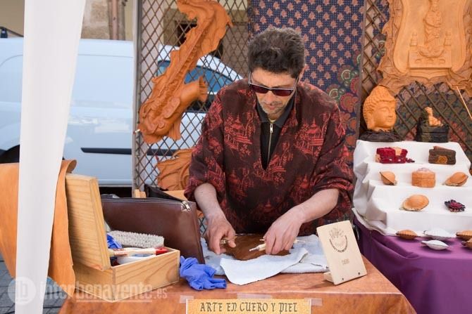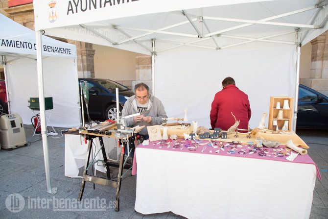 La Plaza Mayor de Benavente acoge durante todo el día la Galería de Artesanía organizada por la Asociación Cultural ÁRTYCE y en la que colaboran una quincena de artesanos de Castilla y León.