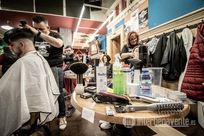 Desde las once de la mañana hasta las siete de la tarde, cuarenta profesionales de la peluquería llegados de distintos puntos del noroeste español pusieron sus manos de forma altruista a disposición de todas las personas que desearon realizarse un corte de pelo, un afeitado o un peinado a cambio de un donativo para ayudar a Afibe.