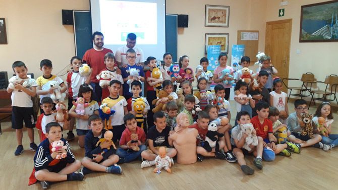 El siguiente paso que se ha dado ha sido la sensibilización entre nuestro alumnado comenzando por los más pequeños. Recientemente alumnos de primero y segundo de primaria han disfrutado de un taller con Miguel y Jonatan, dos voluntarios del Programa de Socorros y Emergencias de la Cruz Roja que les han enseñado de forma amena y divertida cómo actuar en situaciones de emergencia: cómo pedir ayuda ante un accidente llamando al 112, identificar cuándo una persona está inconsciente, la posición lateral de seguridad y la RCP (Reanimación Cardio Pulmonar) para lo cual han practicado con sus peluches.