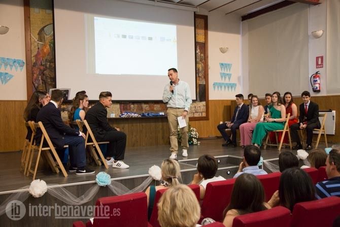 Luciano Huerga durante su presentación quiso transmitirles varios consejos, el primero que no olvidaran sus vivencias durante estos años en el instituto, además de que intenten ser felices “porque a pesar de que penséis que se cierra una puerta, se abren mil más”.
