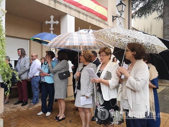 El desfile procesional se veía deslucido pero el orgullo de pueblo se hizo patente poco antes de iniciarse la comitiva. El párroco Miguel Hernández consultaba a los vecinos, momentos antes, si procedía organizarse la procesión. No llovía mucho entonces, pero la apuesta era decidida y la calle Cancillas, donde se alza el templo parroquial, y la calle Mayor,  recibían un año más la comitiva. Eso sí, con un trayecto más corto porque la incesante lluvia se hacía ya notar y los paraguas adueñaron la escena.