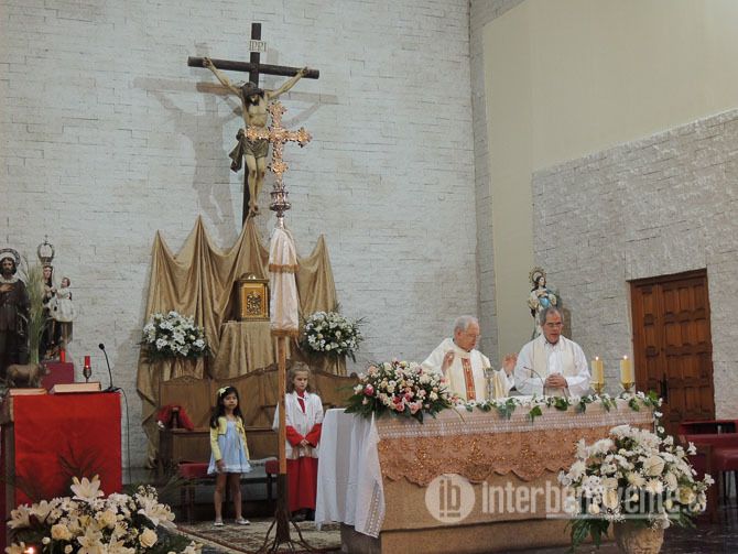 Todo parecía igual. Y así fue. Los sones musicales del grupo Fole Feroz realzaron con su presencia una comitiva que enfilaba la plaza del Ayuntamiento bajo cuyo edificio de la Casa Consistorial se instaló, una vez más, el altar primorosamente ornamentado. Desde ahí, el regreso a la iglesia porque el agua del cielo se hacía ya notar. En el templo, donde antes de la procesión se había celebrado una misa solemne oficiada por el sacerdote Pedro Centeno ayudado por el párroco Miguel Hernández, haciendo las veces de maestro de ceremonias, se despedía con la bendición.