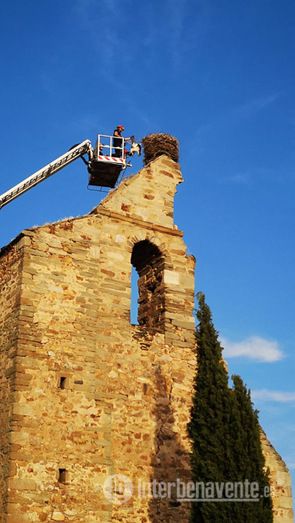 Una cigüeña atrapada durante casi dos días en su nido de la iglesia de Cunquilla de Vidriales tuvo que ser rescatada al atardecer de este domingo por los bomberos de Benavente. La zancuda ha sido trasladada al centro de recuperación de aves.
