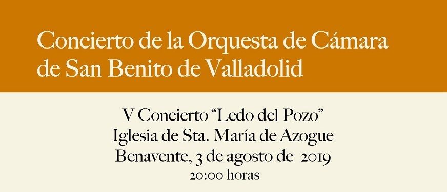 Este concierto correrá a cargo de la Orquesta San Benito de Valladolid, la cual fue creada en 1987 como complemento a la labro docente de Féliz Ángel del Barrio y Mª Dolores Sehkoop, y cuyo objetivo principal ha sido el de educar a jóvenes en la actividad de orquesta ás allá de su formación instrumental individual.