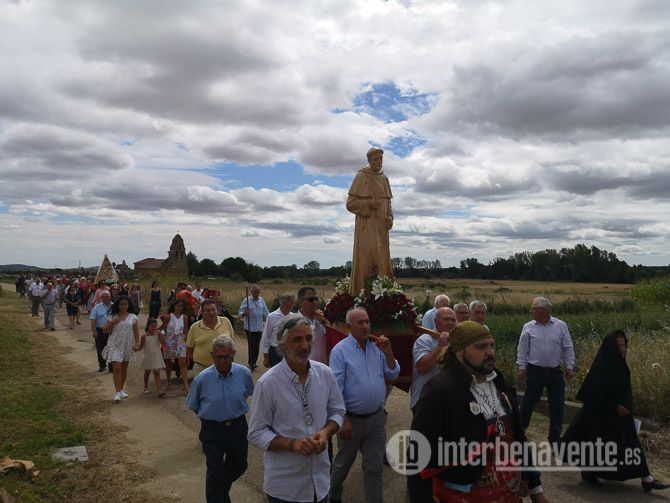 Con el fervor de la tierra, los devotos de San Lucas enfilaron una comitiva iniciada por el pendón y la cruz guía abriendo la procesión religiosa. Estandarte, Ramo de San Lucas, agrupación musical "Bañezaina", la imagen del copatrón y la de la Virgen. Un itinerario desde la iglesia, a un extremo del casco urbano hasta el otro más occidental. De regreso al templo parroquial se celebraba una misa solemne en la que participó la Coral Benaventana. Las ofrendas de productos de la tierra y el canto del Ramo de San Lucas se hicieron referentes en la celebración religiosa. Al finalizar la ceremonia se ofrecieron "las pastas del santo".