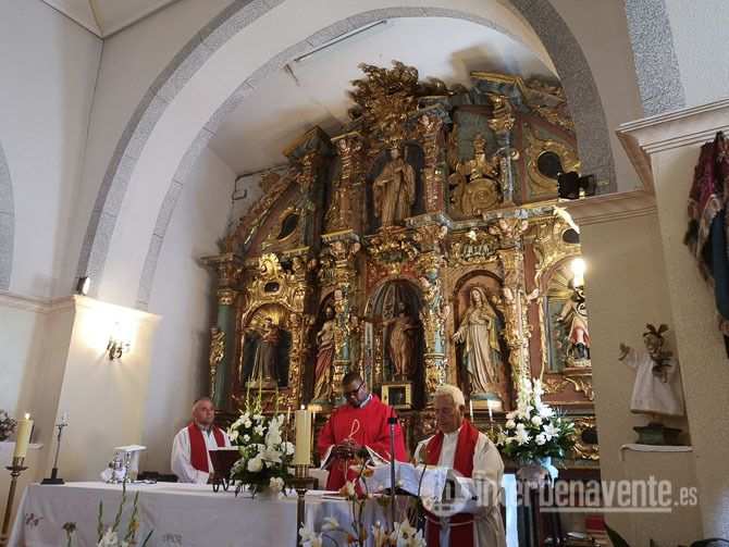 El grupo coral "Encantando" de Manganeses de la Polvorosa logró un encendido aplauso de los fieles que abarrotaban el templo parroquial. Un recinto con una cuidada acústica que hizo elevar las armonizadas voces de la agrupación coral. La misa revestida de solemnidad ayudaba a que el templo luciera sus mejores galas.