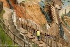Respecto a la estructura de la Pasarela, los empleados de Somacyl han comenzado a desmontar los tramos que quedaron estabilizados a pesar del deslizamiento de los cuestos. Vega indicaba que esas maderas se guardarán en una nave del CTB para su posterior utilización en paseos o en el refuerzo de vallado.