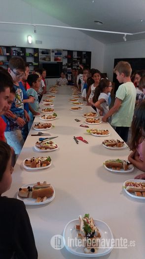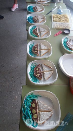 Tanto uno como otro grupo aprendieron algunas técnicas culinarias elaborando platos con gracia y disfrute. Baste como ejemplos, el plato elaborado en forma de barco rodeado por un mar de espaguetis teñidos con colorante alimentario. También un perro salchicha, plato elaborado por los mayores.