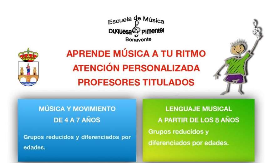La Escuela de Música "Duquesa Pimentel" abre un periodo extraordinario de matrícula durante la semana del 2 al 6 de septiembre para cubrir plazas vacantes en aquellas disciplinas y grupos  que no están completos.