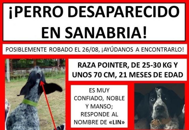 Los dueños de “Lin”, este Pointer de unos 25-30 Kg, 70 com y 21 meses de edad lo buscan desde el pasado 26 de agosto. Lin desapareció en Sanabria y piensan que ha podido ser robado.