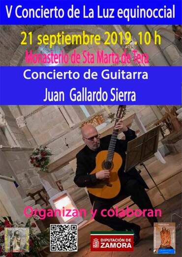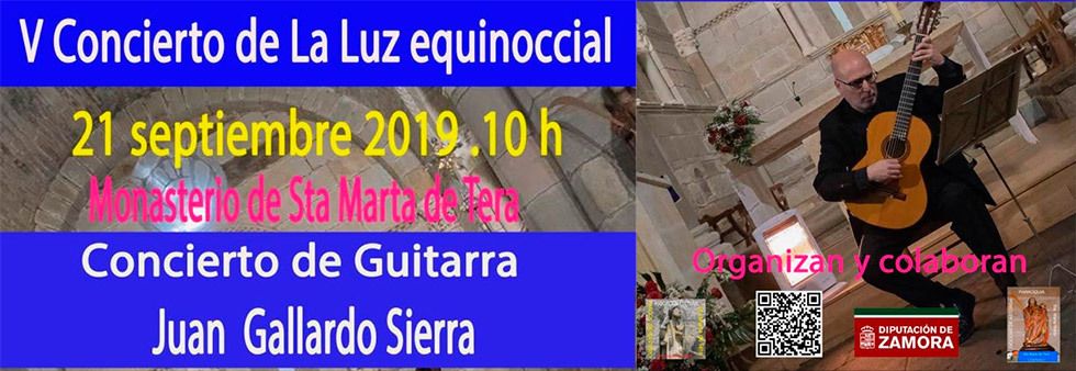El sábado 21 de septiembre a las 10,00 horas en el Monasterio de Santa Marta de Tera tendrá lugar un concierto de guitarra de Juan Gallardo Sierra, coincidiendo con la visualización del fenómeno de la luz equinoccial