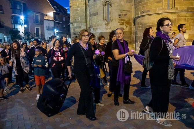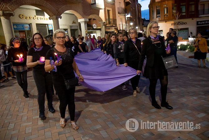 Alredededor de un centenar de personas participaron en la noche de hoy en una manifestación convocada por la asociación Nuevas Ideas, secundando la convocatoria iniciada en Alicante con la denominación de La noche violeta, en respuesta a los más de cuarenta asesinatos de mujeres producidos en lo que va de año