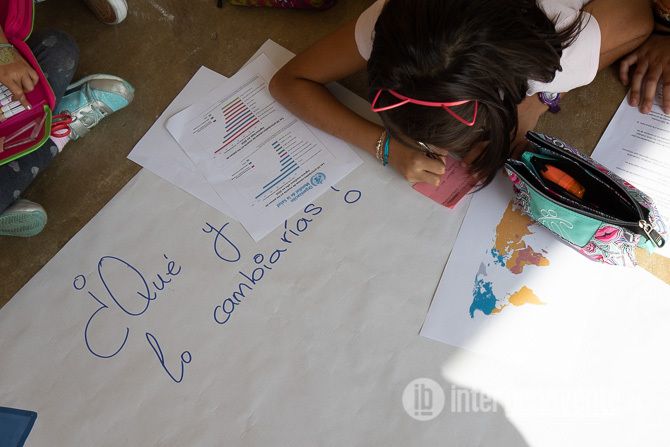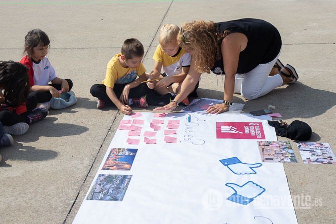 La primera actividad tuvo lugar este viernes en el patio del colegio. Una “lluvia de ideas”  en grupos heterogéneos de alumnos de distintos niveles y etapas a cargo de un profesor que dirige la actividad. Cada grupo confeccionará un mural por cada Objetivo de Desarrollo Sostenible, en el que se plasmarán sus ideas sobre unas preguntas básicas, como qué es lo que está bien o mal o qué cambiarían y cómo lo lograrían. De esta manera los alumnos se acercan a estos objetivos, que serán desarrollados en posteriores momentos durante el curso.