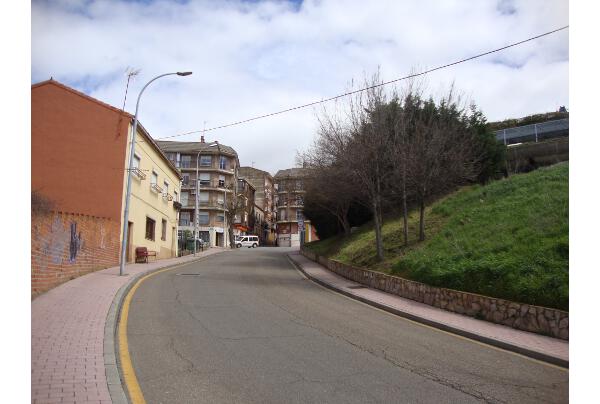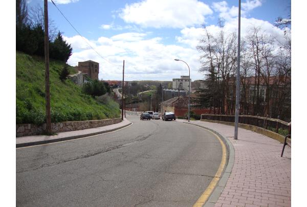 | Comienzo de la Cuesta del Río, en la plaza de Juan Carlos I. |