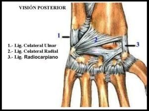 de algún/os ligamento/s y la apertura del espacio entre huesos (muñeca