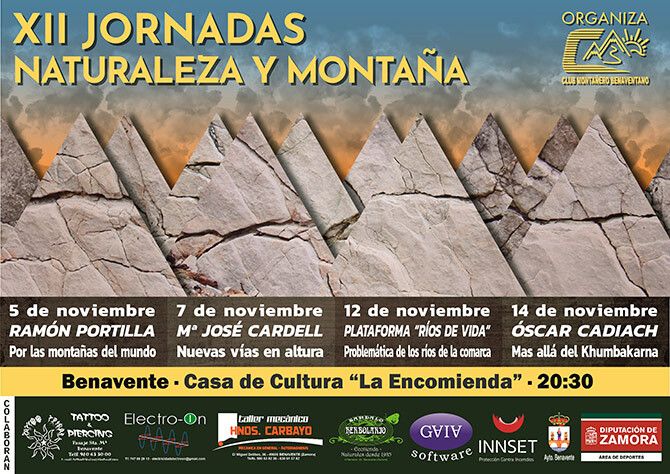 El CDMB ha organizado las XII Jornadas de Naturaleza y Montaña que se celebrarán durante el mes de noviembre de 2019, los días 5, 7, 12 y 14 en la Casa de Cultura de la Encomienda de Benavente a partir de las 20:30.