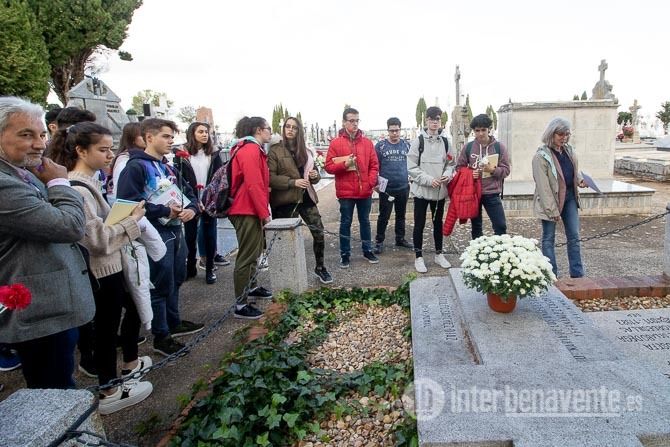 En el cementerio pudieron ver las primeras sepulturas que se realizaron, el panteón de Soledad González, el de Gonzalo Silvela y otros panteones destacables como alguna sepultura realizada por el escultor benaventano Jose Luis Coomonte. Finalmente, Manuel Burón, Concejal de Sanidad, que acompañó a los alumnos en su visita por el cementerio, les explicó la zona donde se encuentra el enterramiento y el monumento a los represaliados.