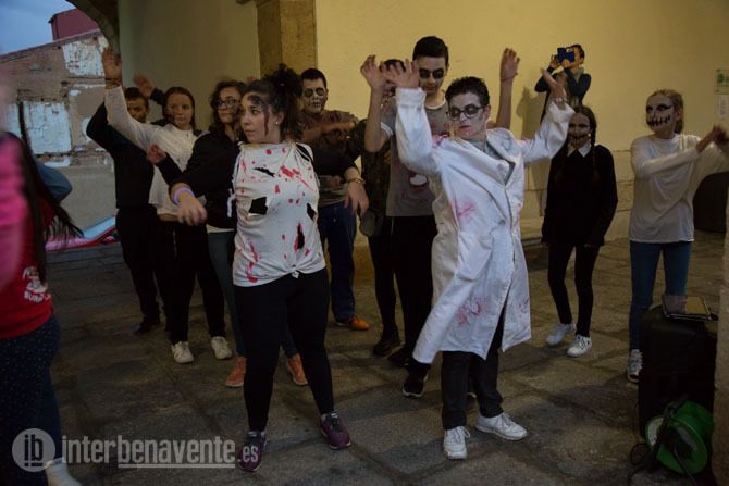La concejalía de Juventud en el Ayuntamiento de Benavente organizaba para la tarde del 31 de octubre un taller de maquillaje zombie. Una actividad que tuvo una participación destacable y que se llevó a cabo en la Plaza Mayor de Benavente donde se instalaron dos carpas en las que se realizaba el maquillaje y se ensañaban las coreografías que posteriormente bailarían en el centro de la plaza tras un pasacalles por la ciudad.
