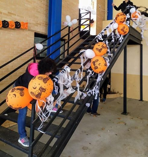 Un entusiasta equipo de voluntario decoró el pabellón y el salón del baile. Además las vecinas decoraron las puertas de sus casas y repartieron caramelos a los niños que con sus calabazas preguntaban truco o trato.