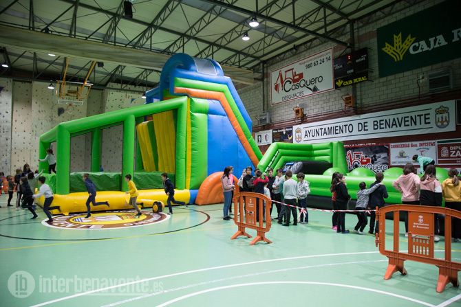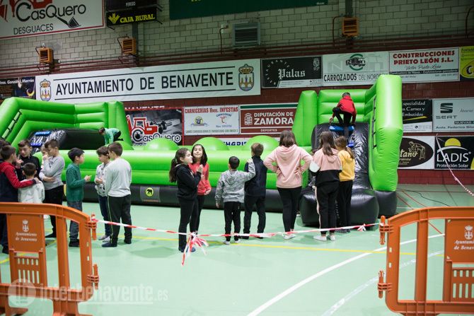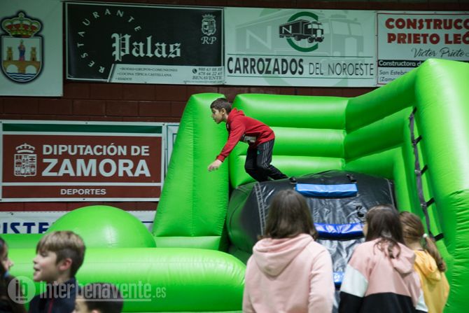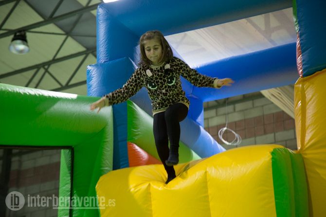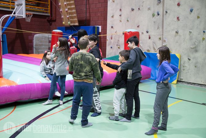 Durante la tarde de hoy, numerosos niños y niñas de diferentes edades disfrutaron cobijados del frío y de la niebla en el Pabellón de la Rosaleda con actividades como escalada, tirolina, tiro con arco, toro mecánico, barredorao wipe out, entre otros.