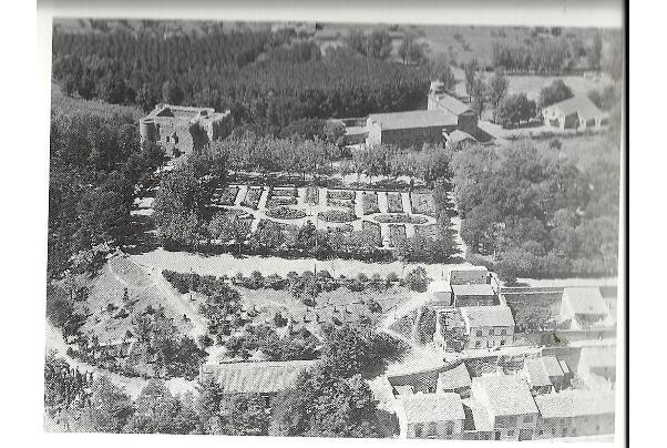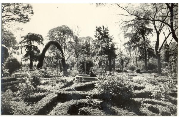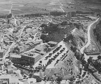 Imagen de 1960 con los jardines y el torreón, único resto del Castillo.