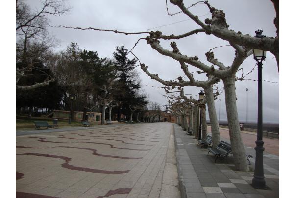 En los Paseos de la Mota no todo el espacio son jardines. Desde hace tiempo, como podemos ver, una parte de los mismos, con menos arboleda, está acondicionada y más preparada para pasear, al tiempo que desde ella se puede contemplar el paisaje amplio y extenso de las vegas de los ríos Órbigo y Esla y de los cauces, canales y caños que de ellos parten. Y  cerca de ellos numerosos árboles, en su mayor parte chopos, que junto las tierras de regadío en las que se cultivan productos variados: trigo, remolacha, maíz, etc., llenan de verdor todo el paisaje.