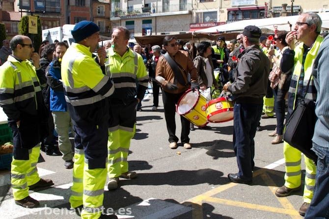 Los empleados laborales del ayuntamiento se hacían oír este medio día con una sonora pitada a las puertas del consistorio. Durante media hora y apoyados por silbatos y tambores fueron el centro de atención de los ciudadanos que acudían al mercado de la verdura.