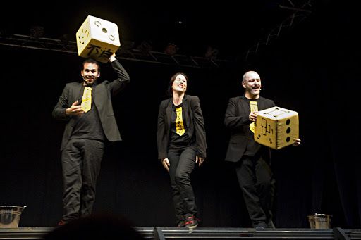 Doce juegos teatrales, el azar en forma de dados elegirá los seis que se realizarán en cada función. Tres actores improvisadores crearán con esos juegos historias instantáneas partiendo de frases y sugerencias del público asistente.