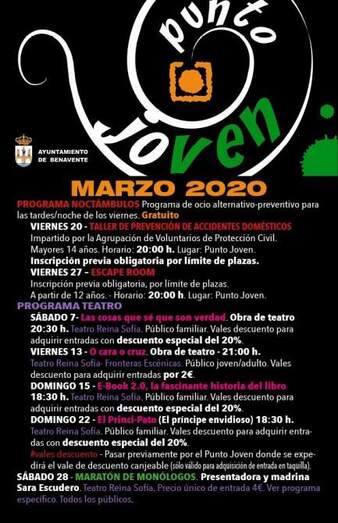 El Ayuntamiento de Benavente, presenta el programa relativo al mes de marzo desde el área de Juventud. Destacando tres bloques principales de actividad: la preventiva, la cultural y formativa.