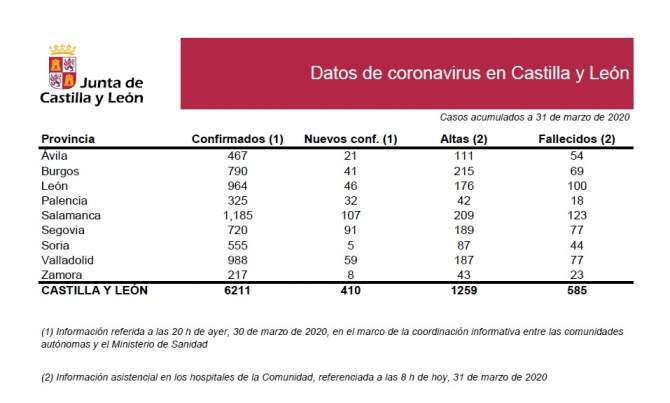 La situación recogida provincialmente puede consultarse en el archivo adjunto y de forma más amplia a través de este enlace al Portal de Transparencia de la Administración castellana y leonesa: Enlace a la información actualizada sobre el nuevo coronavirus COVID-19 en Castilla y León