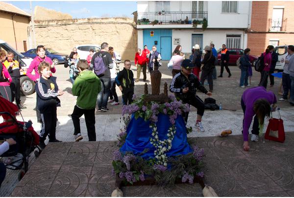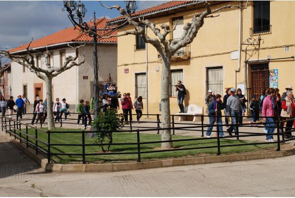 Por fin llegamos a Bariones, de la Vega como muchas otras localidades. Es el pueblo más próximo al santuario de la Virgen. Los peregrinos de Benavente siguen rezando y cantando, con acompañamiento de panderetas y castañuelas. En algunos momentos son cánticos religiosos marianos. La Virgen Veguilla que portan sobre las andas, obra del ebanista y artista Avelino, recientemente fallecido, llama la atención y causa admiración a quienes la contemplan. No deja de ser la Veguilla, la pequeña imagen tan querida por los benaventanos, que hoy va a compartir unas horas con la patrona de la comarca.
