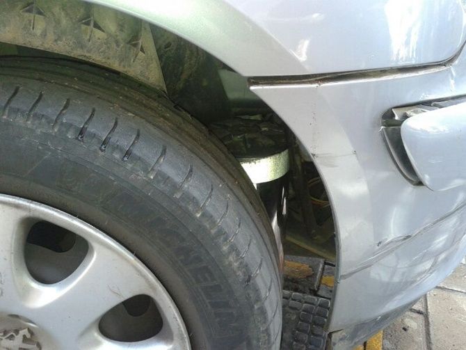 El coche intentaba circular por esa calle sin percatarse que el semáforo estaba en rojo y el pivote estaba ascendiendo tras haber permitido el paso a un usuario autorizado.
