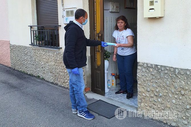FOTO: (el alcalde de Micereces de Tera repartiendo mascarillas entre los vecinos)