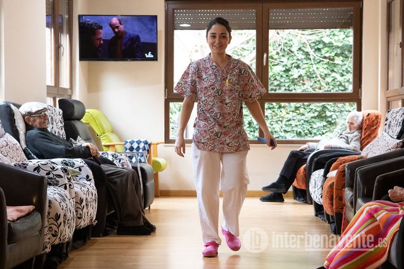 Treinta personas, con una media de edad superior a los 90 años, conviven en esta residencia en la que trabajan 19 personas entre auxiliares, médico, enfermera, fisioterapeuta, terapeuta ocupacional, cocina, etc., a las que Rocío califica como “la gran familia del Corrillo”. La mayoría llevan desde que comenzó esta nueva etapa y forman un equipo muy consolidado.
