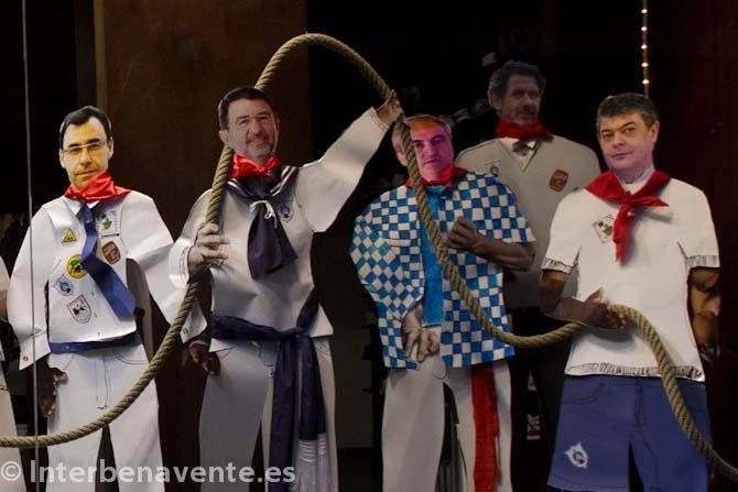 La decoración festiva empieza a llegar a algunos escaparates y Deportes Fidel ha imaginado en el suyo una fiesta en la que conviven cordialmente algunos de nuestros políticos más cercanos.