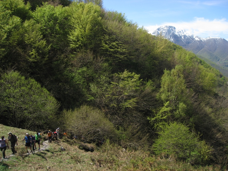 Comenzamos  en  Felechosa  por un camino empedrado con  pendiente  mantenida  hasta  la  Collada  la  Felguera,  siendo  esta  parte  la  más  fuerte  del  recorrido  en  la  que  salvamos  un  desnivel  de  seiscientos  metros. En este tramo nos encontramos con la dificultad de tener que pasar un arroyo que bajaba mas fuerte de lo habitual, colocando piedras y ramas para poder pasarlo. Además en varios tramos la senda era un arroyo, debido a la gran cantidad de nieve y lluvia que ha caido este invierno por la zona. Pasamos por varias Brañas y ya entre prados llegamos a  la  Collada  donde disfrutamos  de  amplias  vistas  con  todos  los  picos  que  nos  rodean,  y  en  especial  con  el  Retriñón,  que adorna  su  ladera  con  un  precioso  bosque  de  hayas  y  acebos. Desde aqui tuvimos la suerte de observar 3 corzos.
