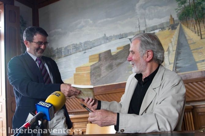 El alcalde, Saturnino Mañanes, hacía la presentació al autor, Alfonso Martínez, destacando los 6 años de asistencia a a Feria del Libro que se celebra en la ciudad y en las visitas que ha realizado en Benavente para presentar sus novelas.