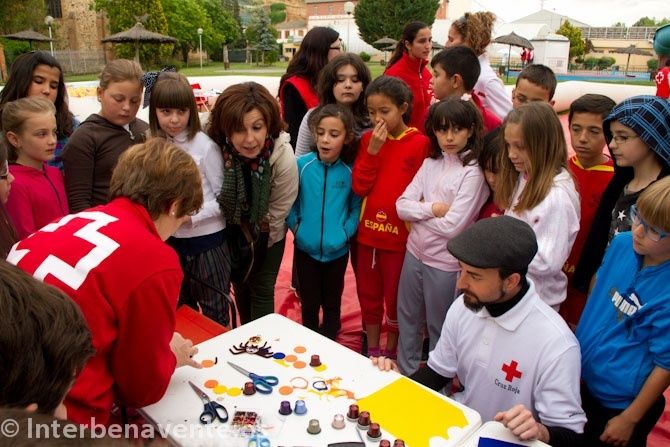 Durante todo el día una enorme cruz de Vichy instalada en el entorno de las piscinas ha servido de escenario para que los alumnos de los colegios que han participado en este programa hayan podido participar ayudados por monitores y voluntarios de Cruz Roja en varios talleres con un denominador común, la prevención.![[Img #11001]](upload/img/periodico/img_11001.jpg)