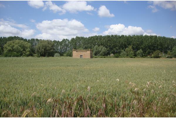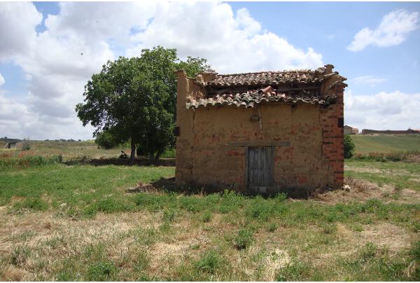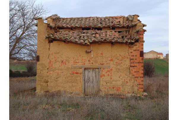 Pasado el pueblo, si nos dirigimos hacia Pobladura del Valle vemos otros dos palomares, también cerca del agua y en medio de las tierras de cereales, alimento útil y necesario para las aves. El de la derecha, con paredes de color blanco destaca en medio del trigo verde, y también por sus adornos. De forma rectangular y orientado, como casi todos hacia el este. Y en el de la izquierda, de tapial sin cubrir la tierra, también rectangular, tejado hacia el oeste y con pequeño muro sobre él para protección del viento. Según me ha contado un vecino es el que más palomas tiene de todos los que hay en el pueblo. Lo peor es su evidente deterioro, que ocasionará su destrucción, si su dueño no lo repara y protege. Ojalá se una a la campaña que existe en otras provincias de promoción y salvación de los palomares.