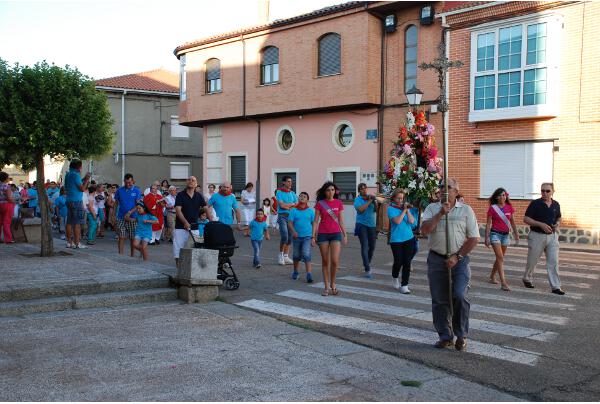 Desde distintas calles del pueblo se acercan para participar en la ofrenda floral.