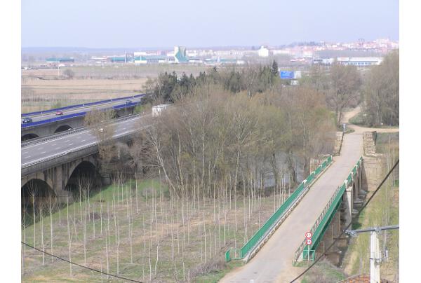 Benavente. Junto al puente de hierro el nuevo viaducto, ambos en uso.