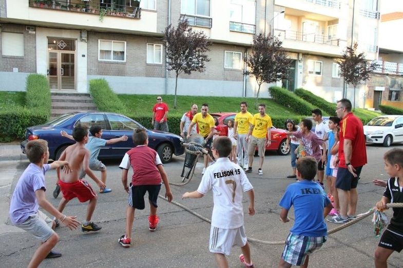 Los niños del Barrio de Santa Clara contaron en su programación festiva con la colaboración de la Asociación Benaventana del Toro Enmaromado que con un carretón y una maroma les enseñaron las reglas básicas para correr el toro